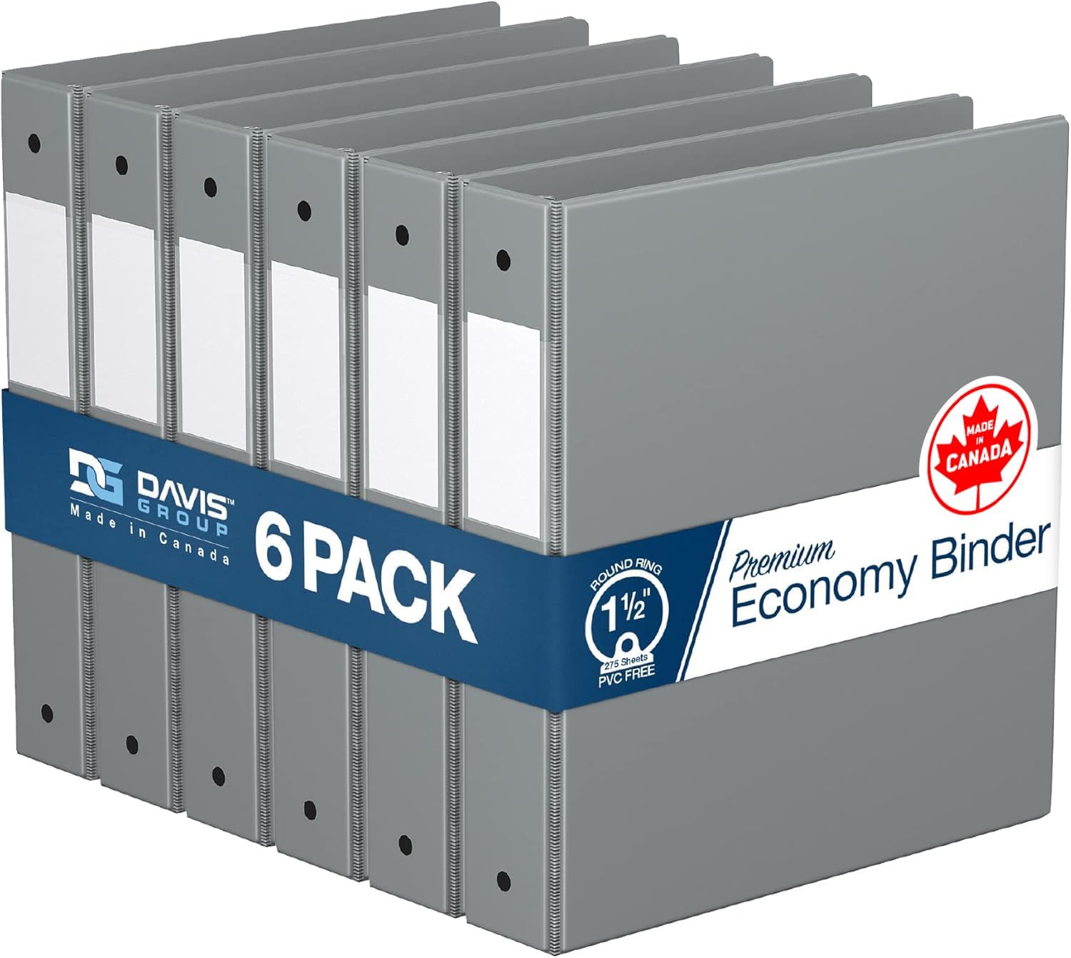 Premium Economy 6-Pack 3-Ring Binders for School or Office, Round-Ring Binders, 1.5 Inch, Gray