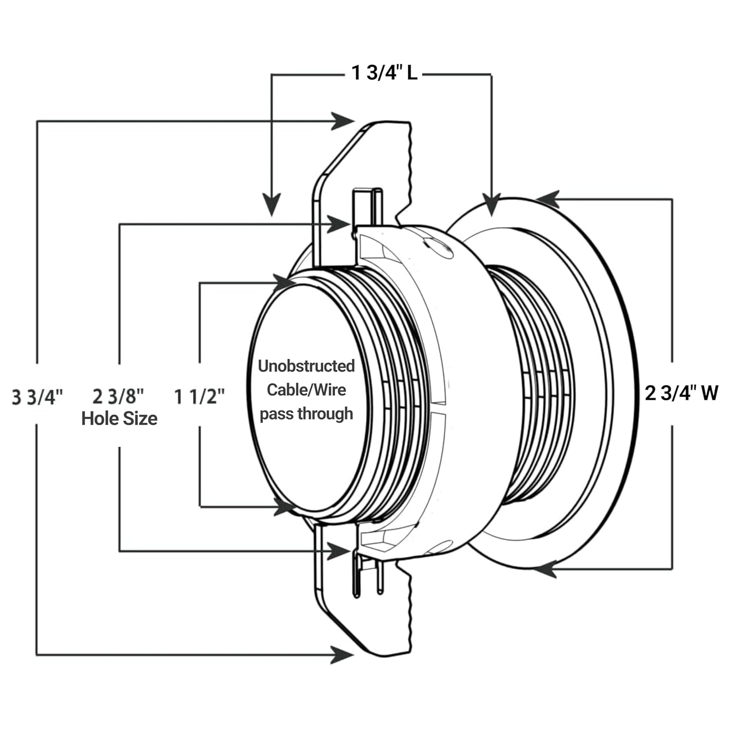 (1-Pack White) Cable, Wire & Cord Management - Self Locking Grommet with Cover for Walls, Ceilings, Desks, Used for All Surfaces 3/8” to 1” Thick, Made in USA