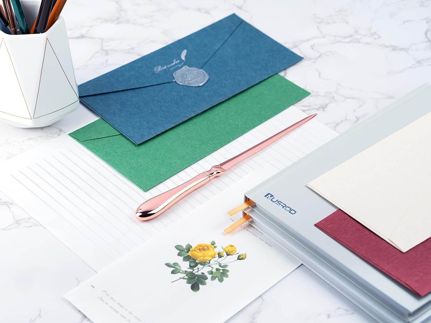 Rose Gold Letter Opener, Envelope Opener Knife Metal Letter Opening Knife, Paul Revere Paper Cutting Knife, 9 inches (1 Pack)