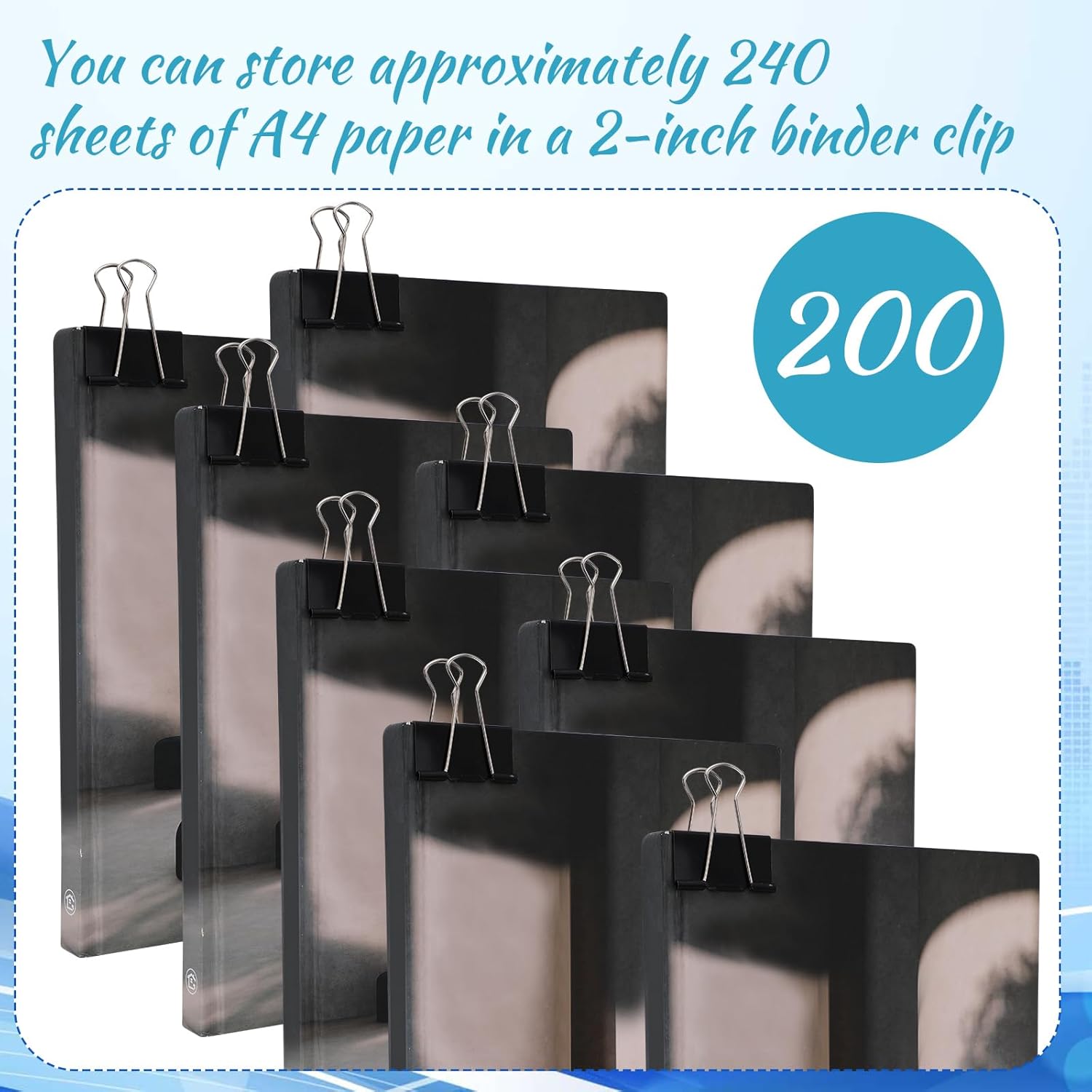 - Suitable for Everyday Usage: enjoy the convenience of our extra large binder clips package, which includes a generous quantity of 200 pieces; This ample supply will cater to your daily needs, ensuring you have enough to use in your home, classroom or office; Even better, you can share or gift these to your friends, colleagues, and family members