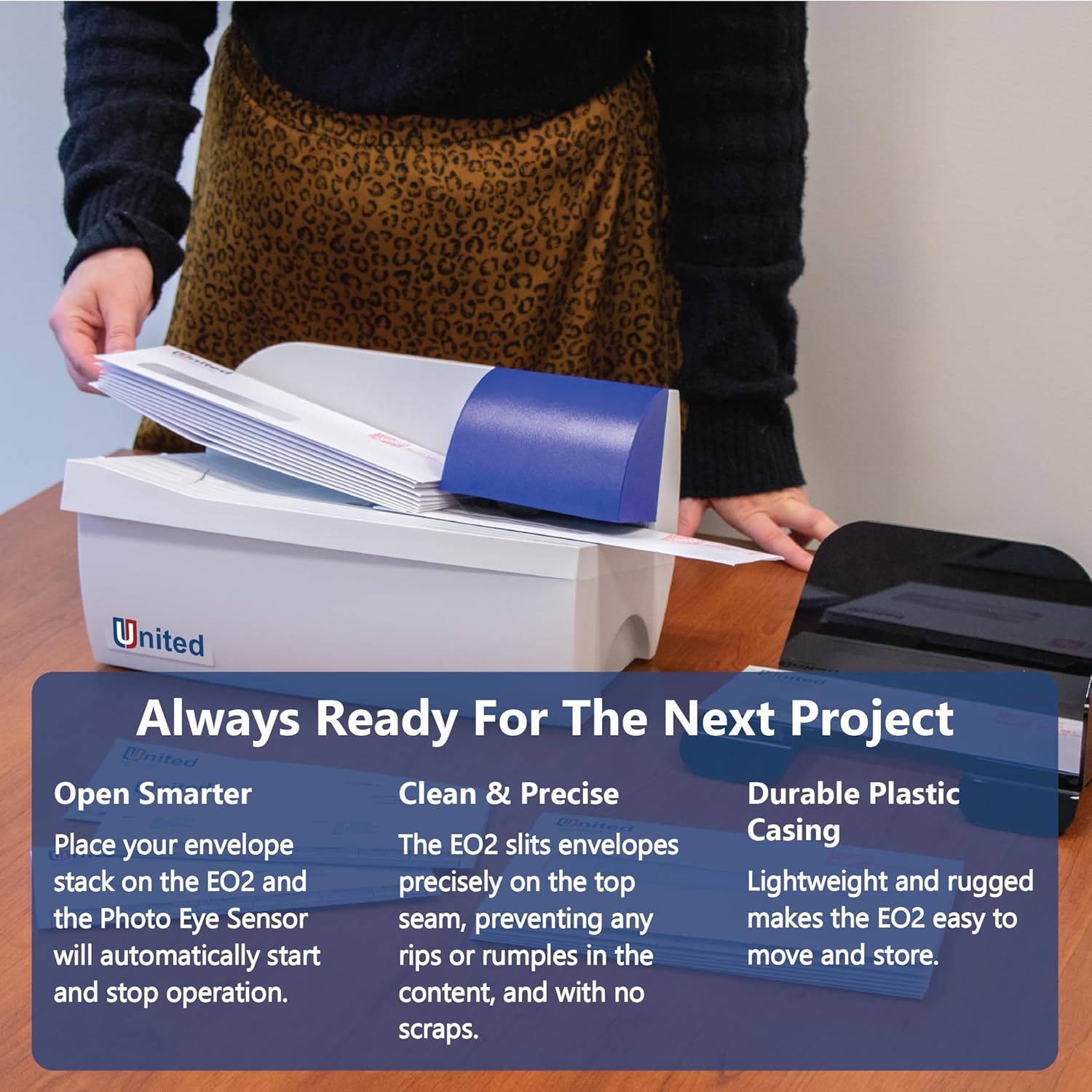United Office Products EO2 Electric Letter Opener, Automatic Desktop Envelope Opener, Mess-Free Envelope Slitting Machine