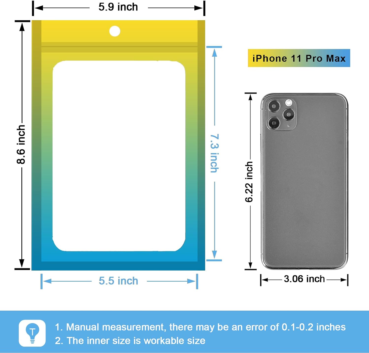 100 Pcs Resealable Mylar Bags, Gradient Color Food Storage Bags, Zip Bag Foil Bags Packaging Pouch for Food Storage, Sample, Small Business (Yellow Blue, 5.9 X 8.6 Inch)