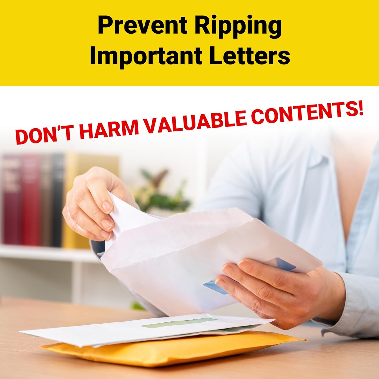 - PREVENT RIPPING IMPORTANT LETTERS OR CONTENTS! Simply insert the mail opener knife under the envelope flap and slide along the edge for a clean, perfect cut that won't harm the valuable contents.