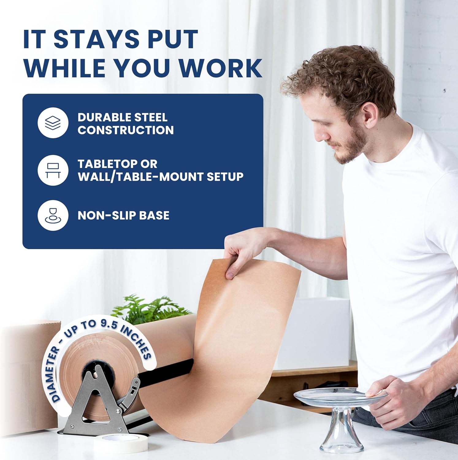 - Stays in Place: Rubber feet and stabilizing bars keep the dispenser steady while you’re tearing, protecting your tabletop