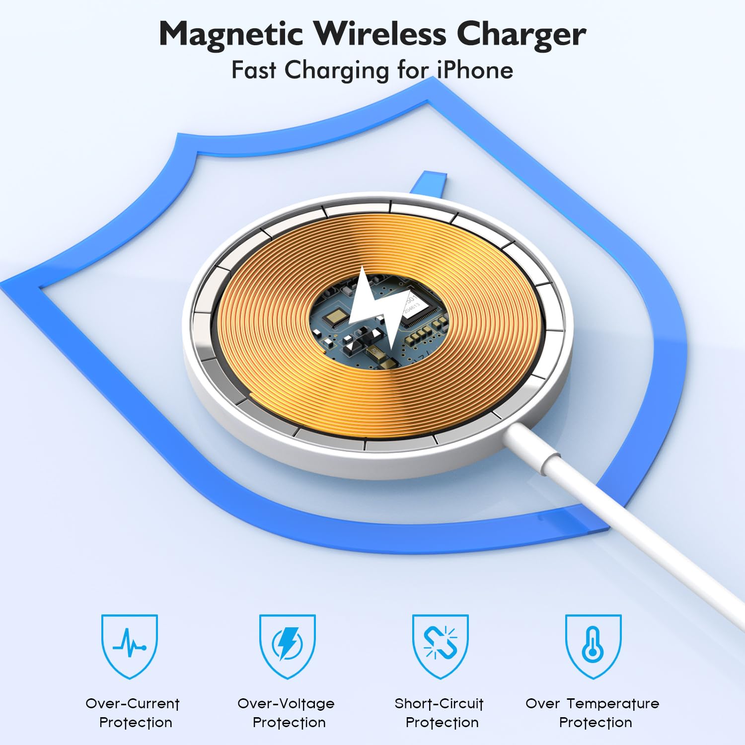 - 【Magnetic Wireless Charger】6FT iPhone 17 16 Magnetic Charger support 360°Charger in any angle. Strong magnetic attraction while maintaining FAST charging speed. Built-in smart chip has over-current protection, over-voltage protection, over Temperature protection and short-Circuit protection.